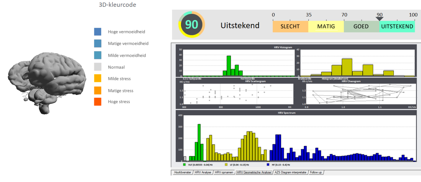 De metingen hebben betrekking op sympaticus en parasympaticus. Analyses worden gedaan m.b.t. stressniveau, vermoeidheids- en energielevel, belasting, herstelcapaciteit, relatie hart met zenuwstelsel, aanpassingsvermogen aan stress, mate van emotionele en fysieke activatietoestand van het centraal en autonoom zenuwstelsel.